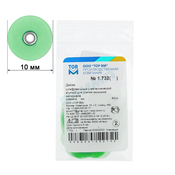 Диски шлифовальные на лавсановой основе с металлической круглой втулкой № 1.732-10 для предварительного шлифования. Удобны для обработки пломб из композитных материалов на фронтальных зубах, а также на проксимальных, вестибулярных, язычных и небных поверхностях жевательной группы зубов. Закрепляются в дискодержатели № 1.121 цангового типа. Диаметр диска 10 мм, цвет зеленый. Упаковка 40 шт.