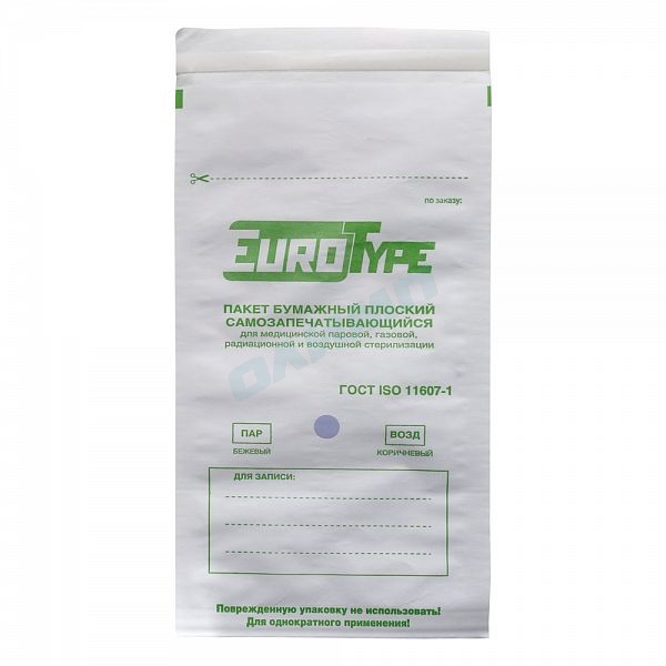 —Крафт-пакет белый влагопрочный самозапечатывающийся с индикатором 75х150мм (100шт), ЕвроТайп