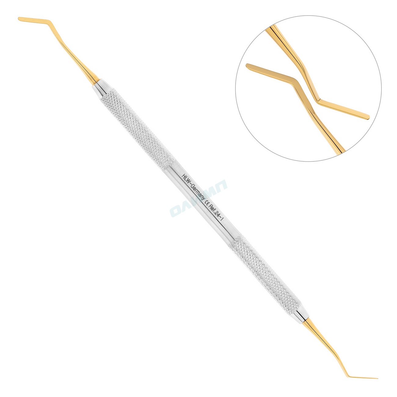 Ретенционные узоры на внешней поверхности круглой рукоятки стоматологической гладилки предотвращают скольжение фаланг пальцев в перчатке, а также позволяют снизить нагрузку на р