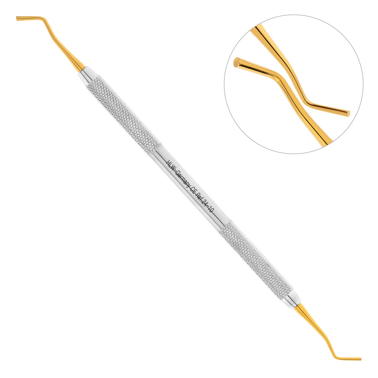 На внешнюю поверхность круглой ручки штопфера нанесены ретенционные узоры, предотвращающие скольжение фаланг