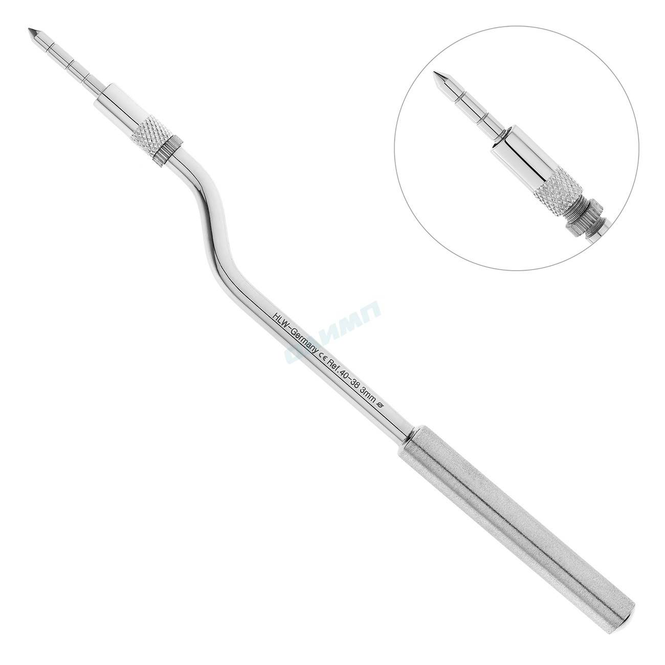 Рабочая часть стоматологического инструмента с диаметром рабочей части 3 мм выполнена в виде цилиндра с заостренным окончанием. На конце рабочей части расположена градуировочная шкала для контроля глубины введения инструмента и муфта, которая ограничивает движение остеотома. Такая конструкция инструмента снижает риск повреждения дна гайморовой пазухи.