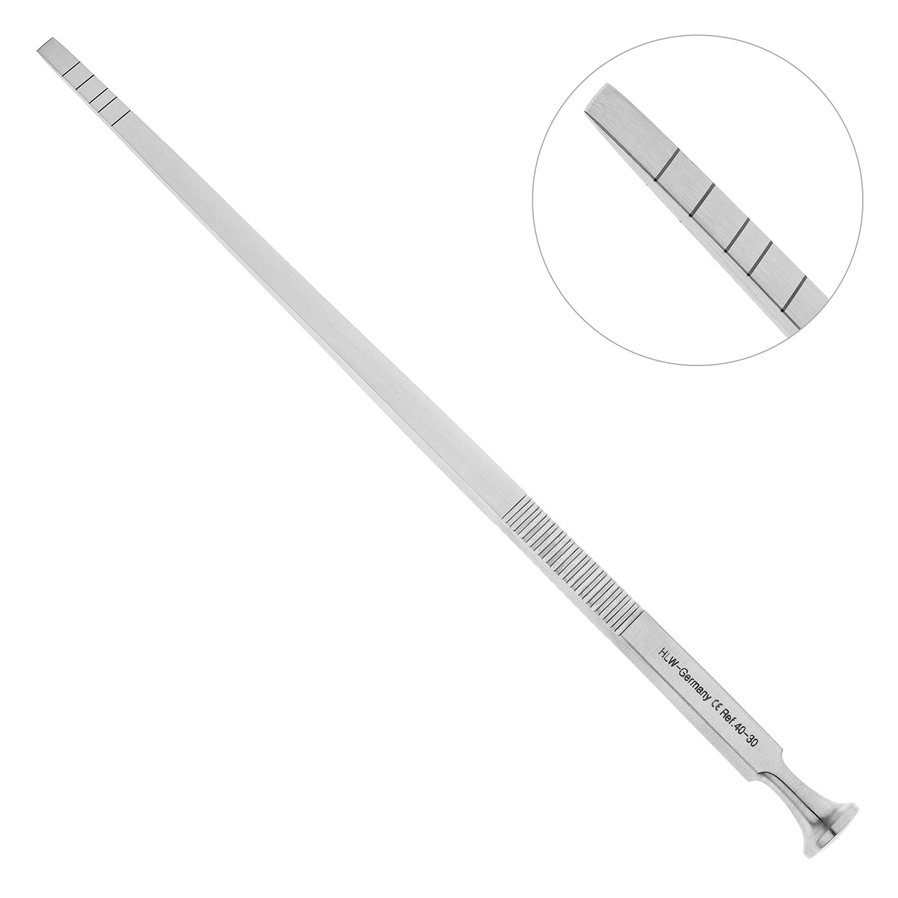 Поперечные ретенционные полосы на обоих сторонах долота способствуют отличной фиксации инструмента, что снижает нагрузку на руку при проведении операции.