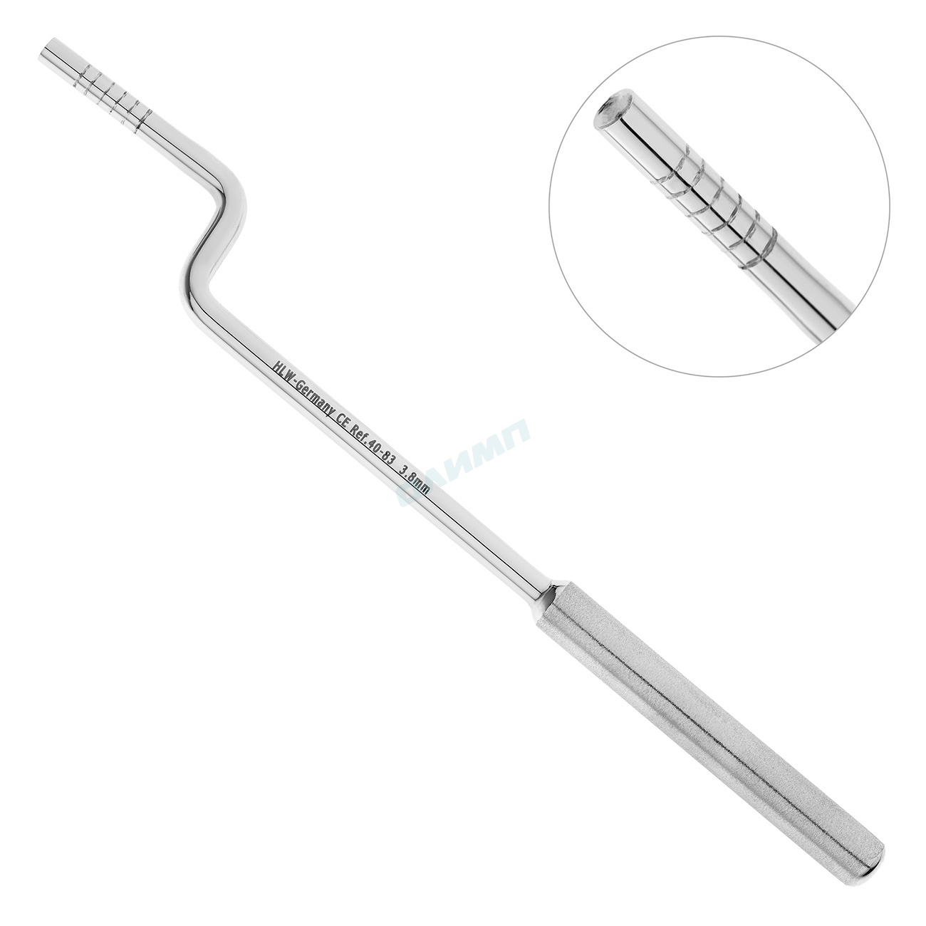 Ручка инструмента тяжелая, утолщенная, цилиндрическая для надежной фиксации остеотома в руке, а также во избежание травмирования руки врача при использовании специализированного медицинского молотка.