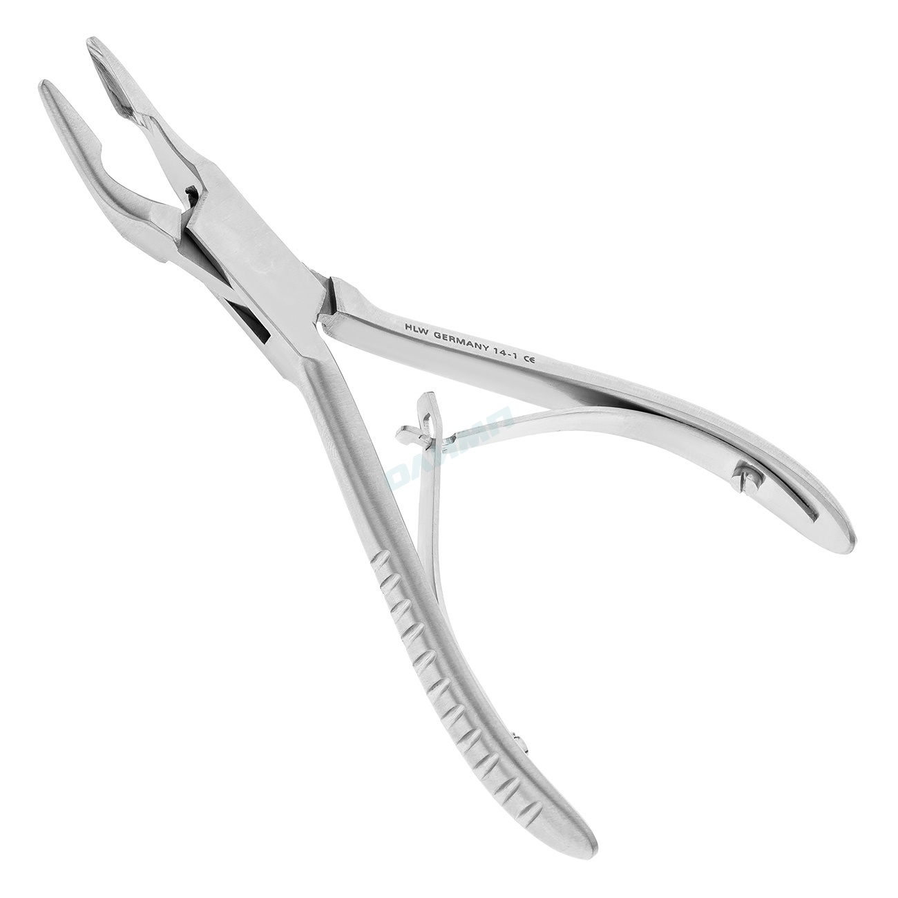 Рабочие части костных кусачек имеют изгиб по плоскости, благодаря которому инструмент можно использовать на труднодоступных участках полости рта. Заостренные края и желобовидные углубления на внутренних поверхностях щечек обеспечивают точечное скусывание костных участков без излишнего давления на соседние ткани.