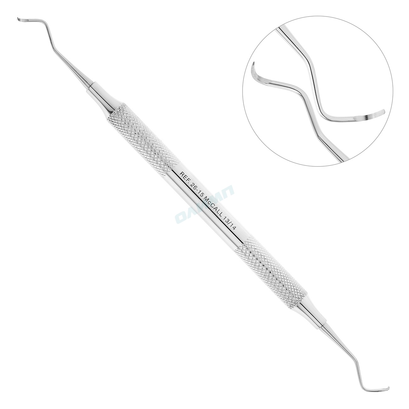 Ручка инструмента двусторонняя. С обоих концов рукоятки расположены зеркально отраженные рабочие части, каждая из которых имеет форму полукруга с острыми режущими краями. Лицевая поверхность скейлера расположена под прямым углом относительно терминального стержня, благодаря чему лезвие инструмента наилучшим образом адаптируется к поверхностям корней.