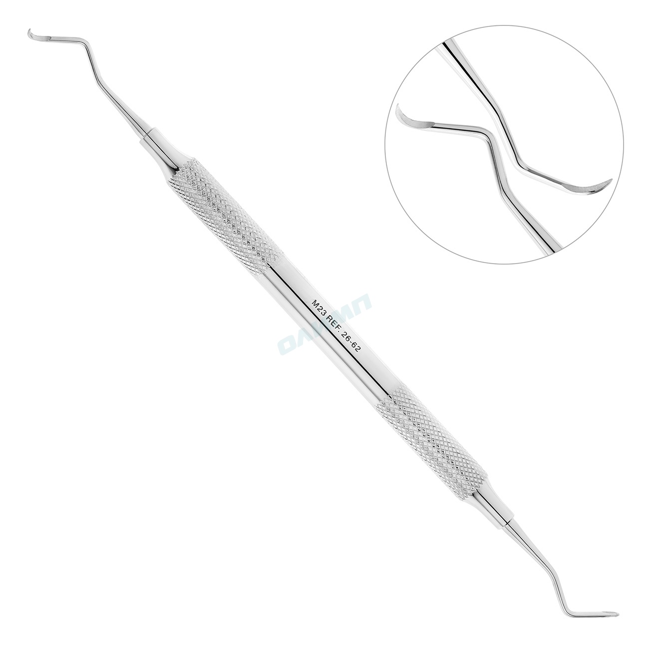 Благодаря острому кончику, удлиненной рабочей части с полукруглым сечением и наличию заостренных режущих кромок инструмент прекрасно удаляет отложения на поверхности зубов, не травмируя мягкие ткани.