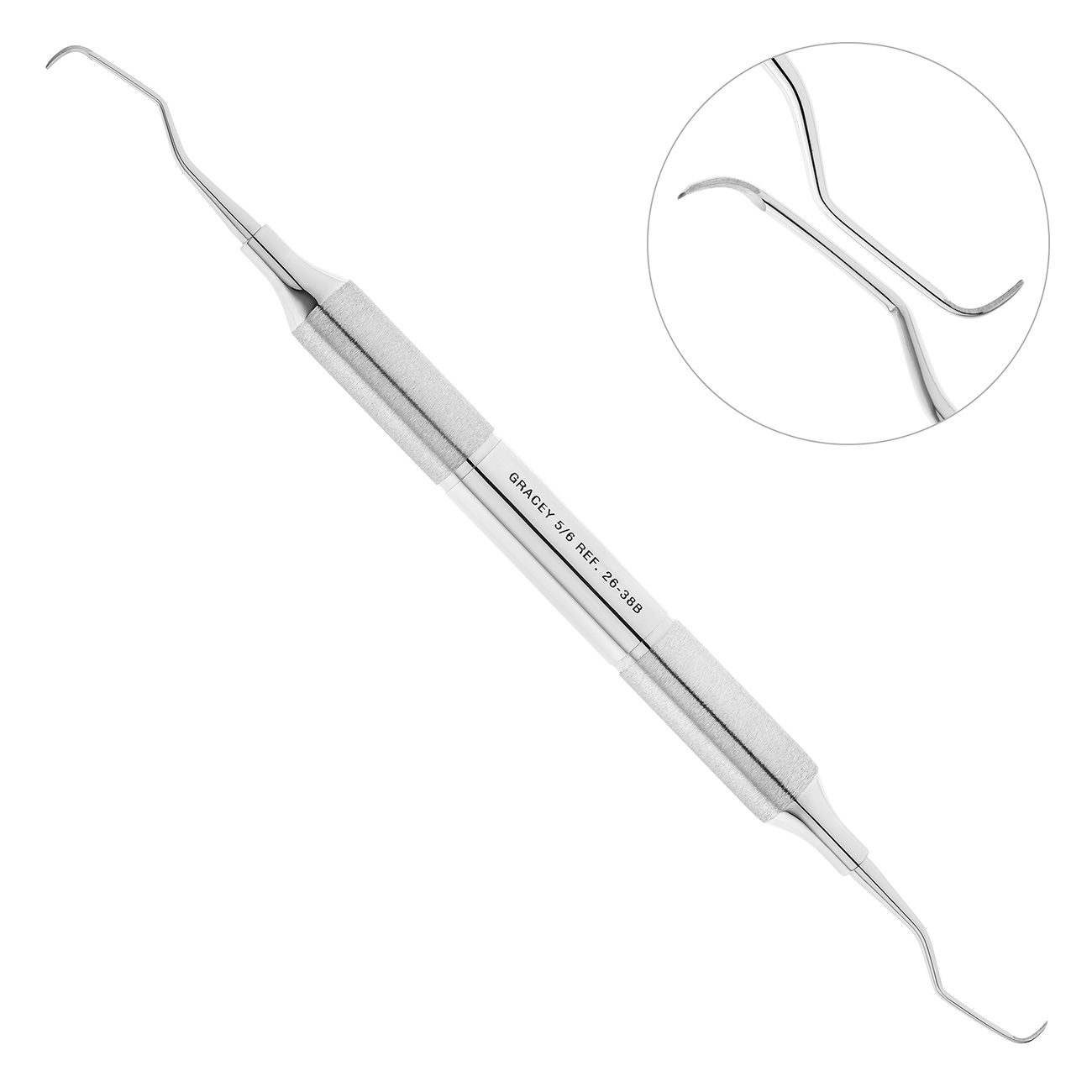 Эргономичная полая ручка инструмента покрыта шероховатым микрорельефом для удобного и надежного удержания кюреты в процессе работы.