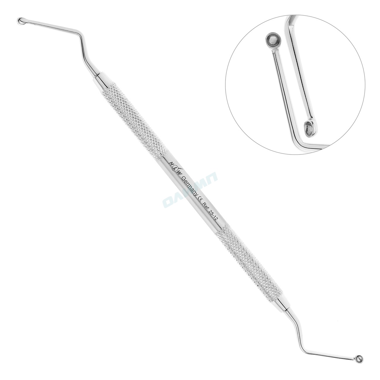 Рабочие части стоматологического инструмента имеют двойной изгиб по ребру и удлиненную рукоятку, что способствует проведению кюретажа в труднодоступных участках полости рта.