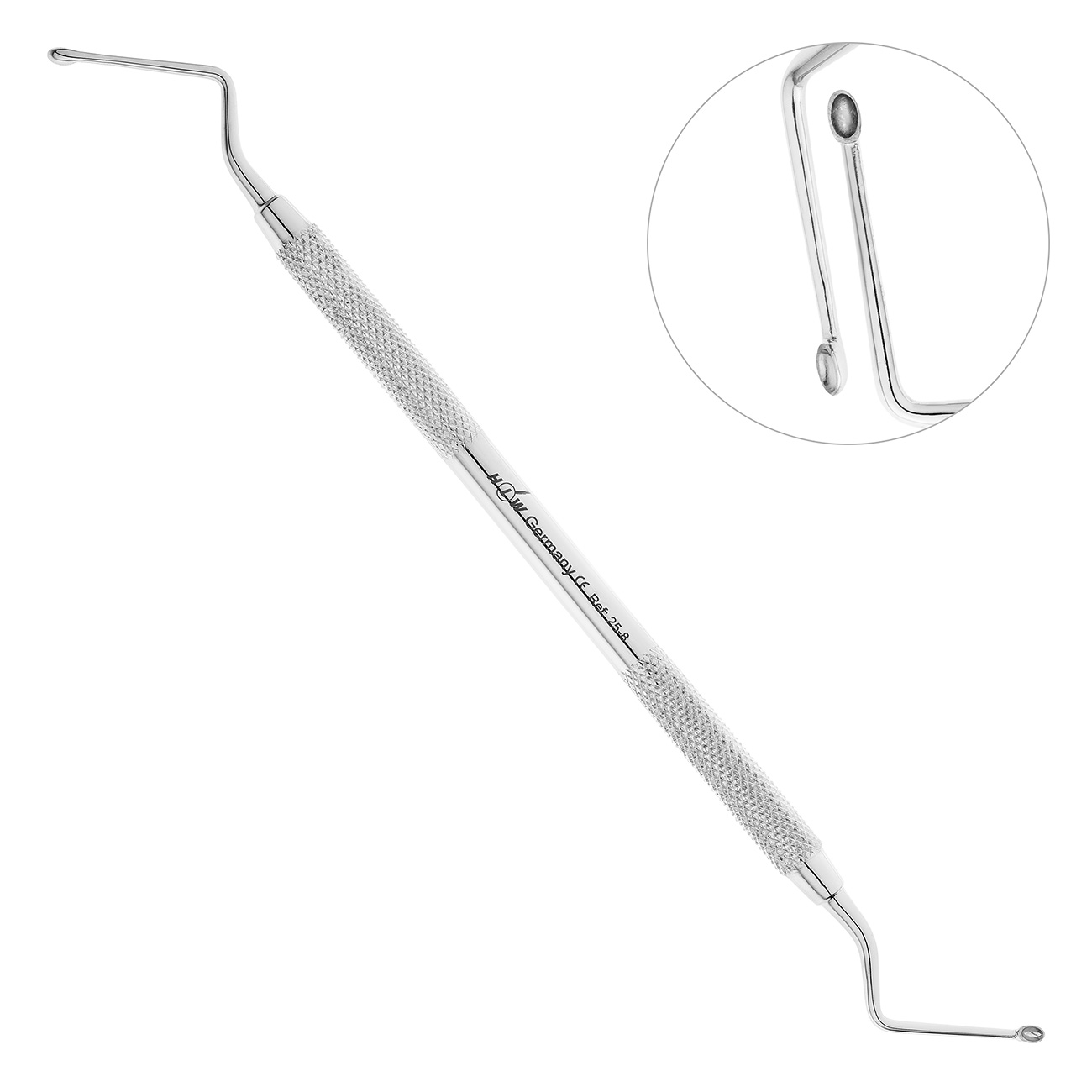 Кюретажная ложка Hemingway производства компании HLW Dental Instruments используется в хирургической стоматологии для удаления мелких фрагментов из лунки, а также кюретажа грануляционных тканей.