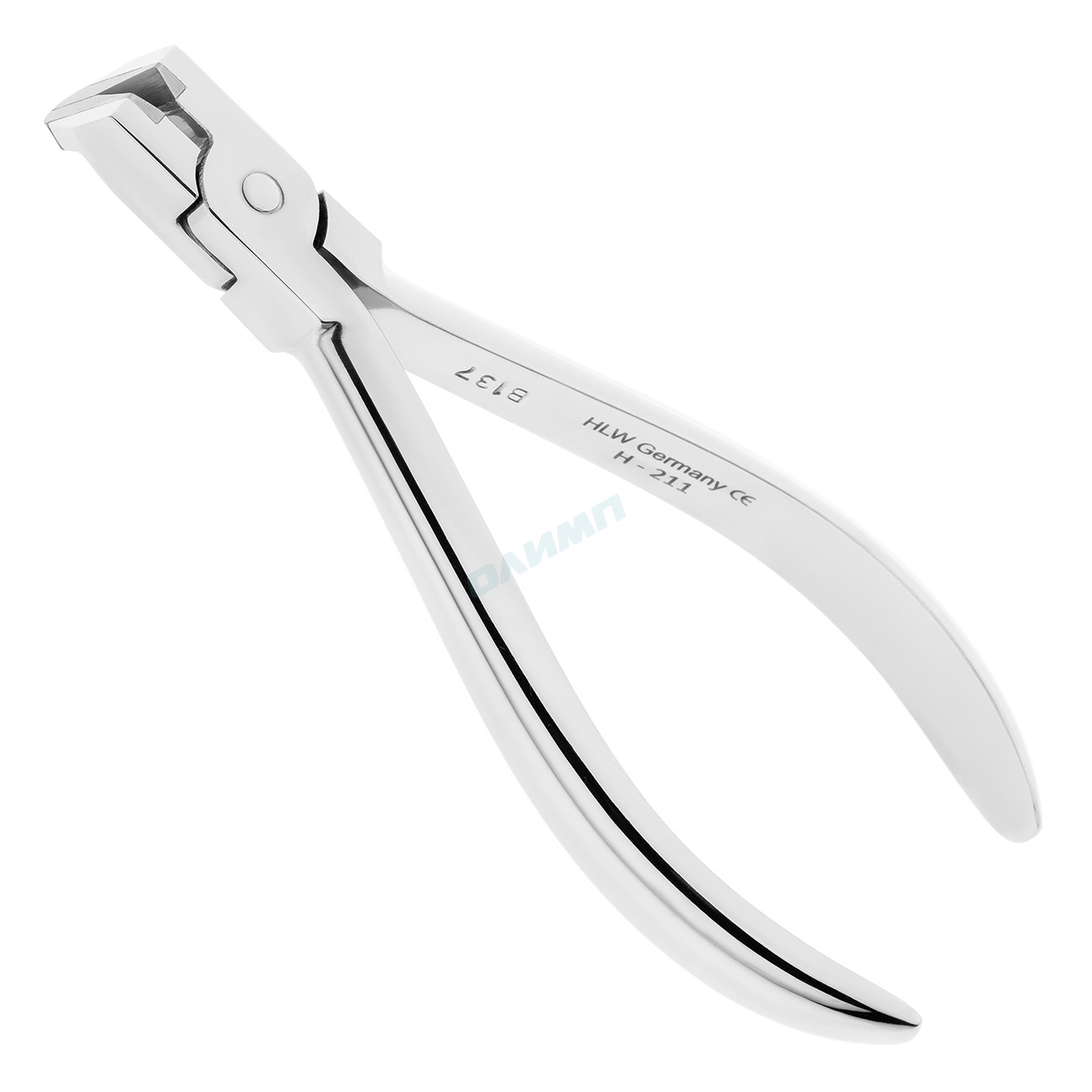Дистальные кусачки торговой марки HLW Dental Instruments для укорочения дуги от .020 до .028. Рабочие части инструмента с острым откусывающим элементом расположены под прямым углом к продольной оси щипцов, что обеспечивает доступ к дуге в пределах 0,5 мм от дистального края щечной трубки.
