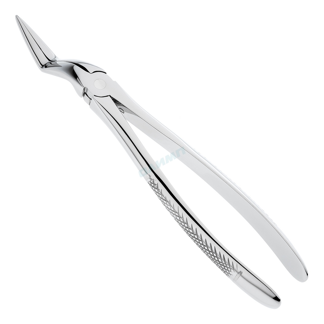 Узкие, сходящиеся, удлиненные, с продольно-поперечными насечками на внутренней поверхности рабочие части щипцов обеспечивают плотный захват корня и облегчают его удаление. В основании шарнирного соединения стоматологического инструмента имеется тефлоновая вставка, обеспечивающая плавный ход щипцов.