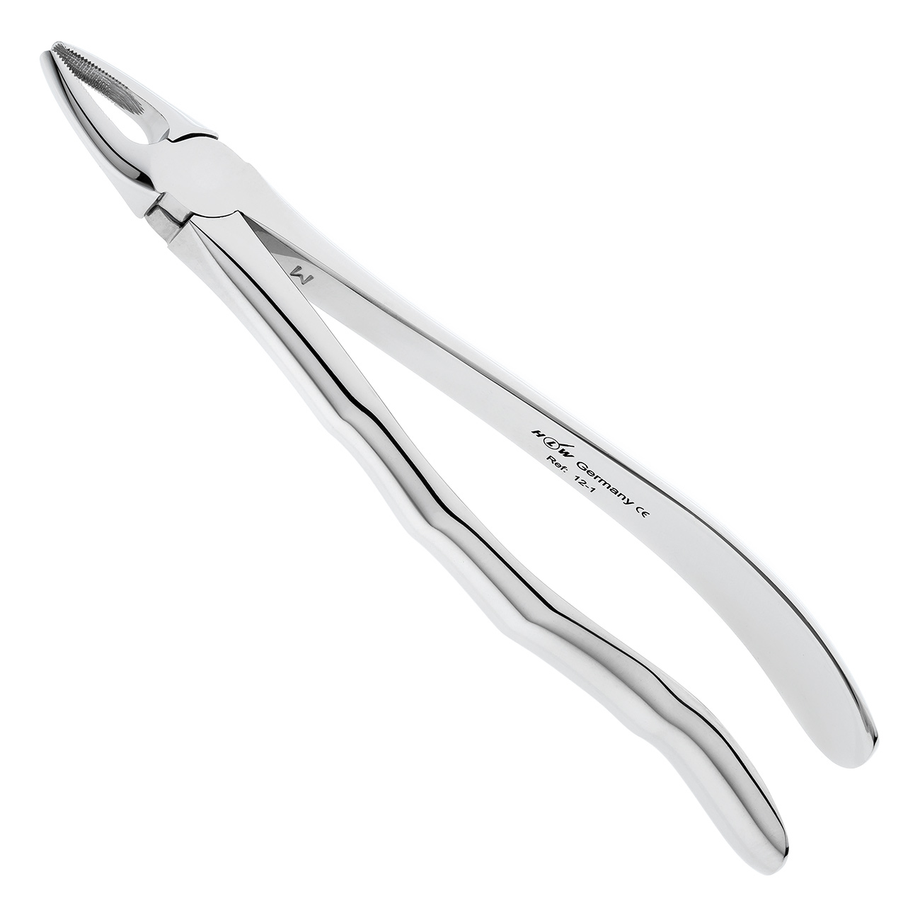 Для удаления резцов и клыков на верхней челюсти применяются щипцы формы №1 немецкого производителя HLW Dental Instruments.