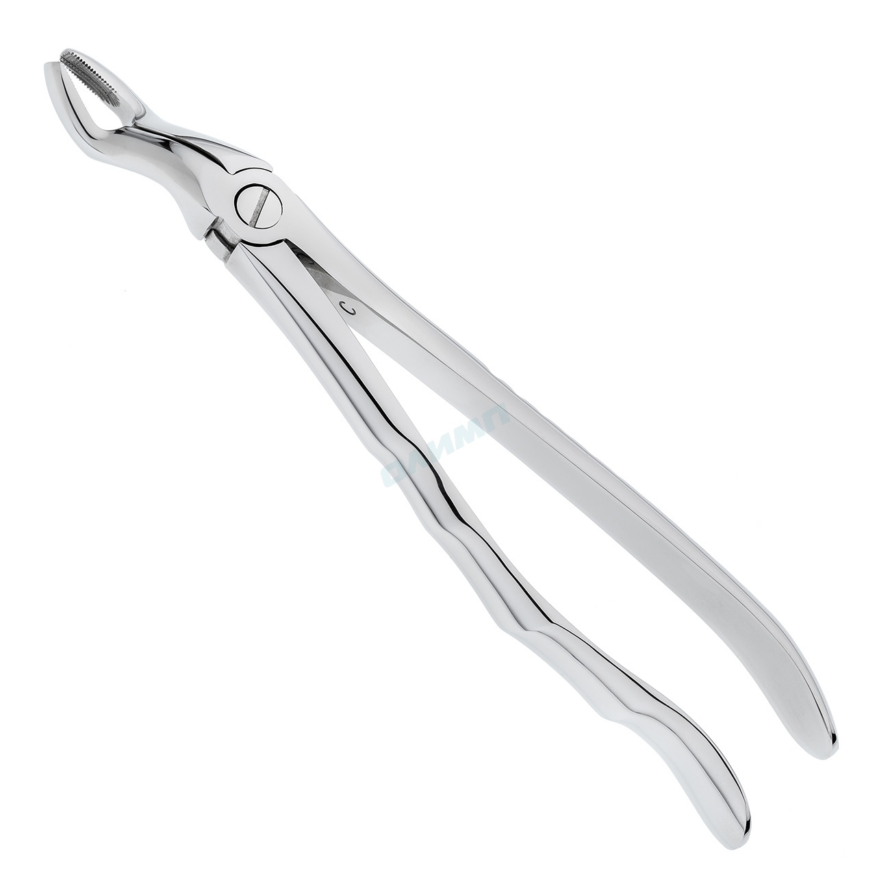 На внутренней поверхности рабочей части щипцов продольно-поперечные насечки, которые обеспечивают плотный захват зуба и облегчают его удаление. Благодаря удлиненному штыковидному изгибу на рабочей части обеспечивается улучшенный доступ к операционному полю. Щечки щипцов не сходятся. В основании шарнирного соединения стоматологического инструмента имеется тефлоновая вставка, обеспечивающая плавный ход щипцов.