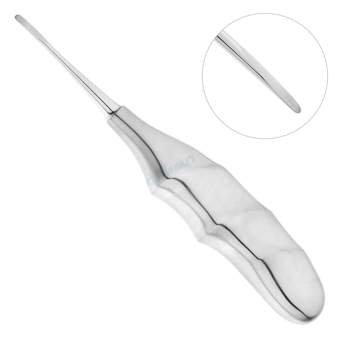 Анатомическая ручка люксатора удобна в использовании. На поверхности рукоятки расположены выемки, которые препятствуют скольжению фаланг пальцев в перчатке и способствуют проведению успешной операции.