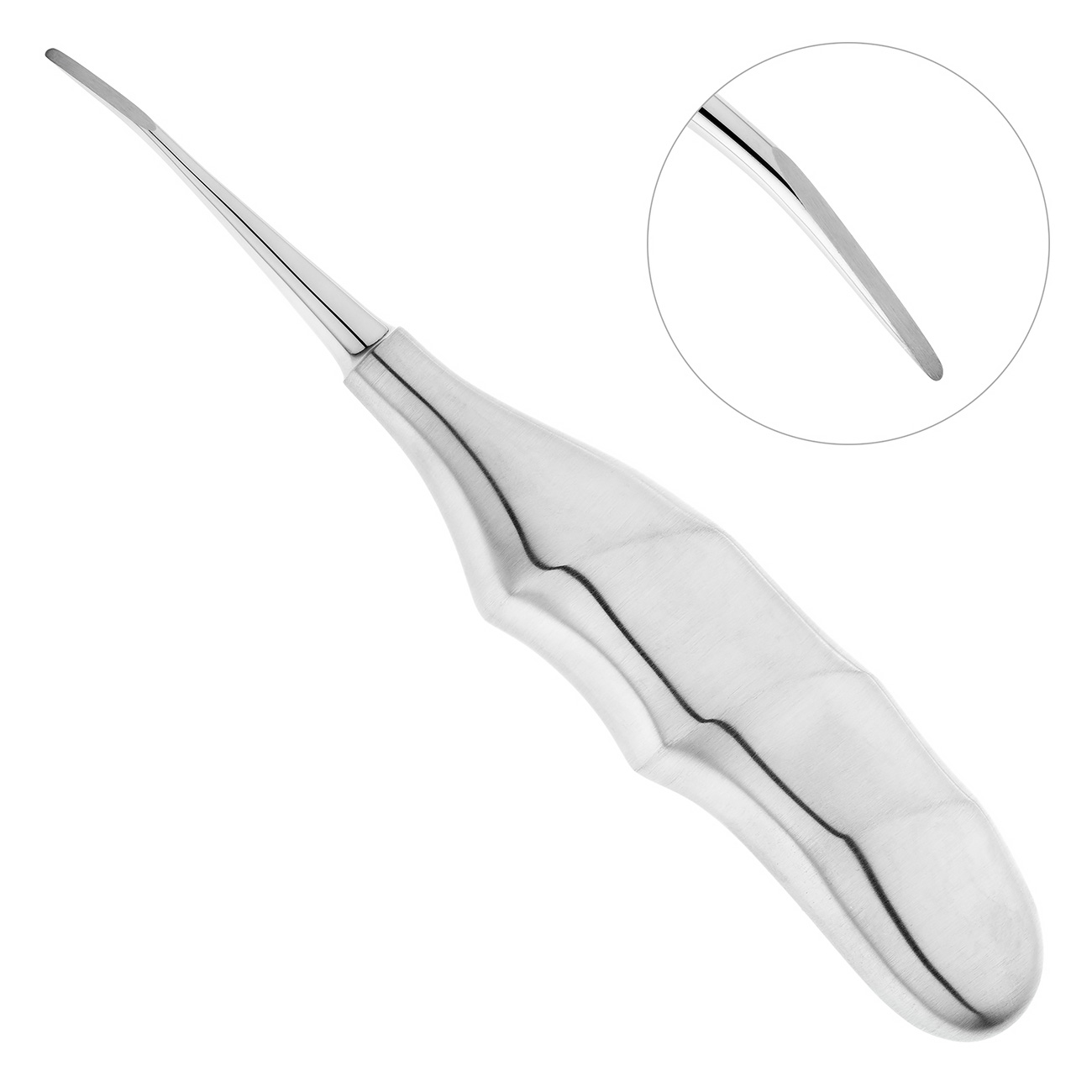 Рабочая часть инструмента представляет собой очень тонкое острое лезвие овальной формы с одиночным изгибом по плоскости. С помощью такой конструкции люксатора легко проникнуть и подрезать периодонтальную связку. При этом удаление происходит намного безопаснее, чем при использовании обычных хирургических стоматологических инструментов.